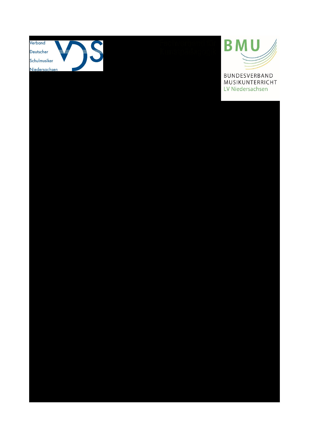 Die Fachverbände VDS (Verband Deutscher Schulmusiker Niedersachsen), BMU (Bundesverband Musikunterricht Niedersachsen) und BDK (Fachverband Kunstpädagogik Niedersachsen) sehen mit großer Sorge einen erneuten Versuch des Kultusministeriums, die Stundentafel der Jahrgänge 5-10 im Gymnasium zu Lasten der Schulfächer Kunst und Musik zu verändern.