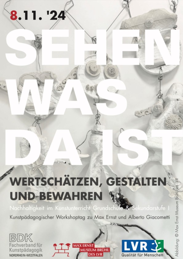 Der kunstpädagogische Tag des BDK der Grundschule und Sekundarstufe I im Max Ernst Museum ist als Denkraum und Werkstatt mit praxisorientierten Workshops für Lehrerinnen und Lehrer konzipiert. Im Fokus stehen kunstpraktische Herangehensweisen, Erfahrungen und Arbeitsweisen, die sich mit Themen nachhaltiger Entwicklung auseinandersetzen. In einer zweistündigen praxisorientierten Phase wird in vielfältigen Übungen mit Materialien experimentiert und gearbeitet.