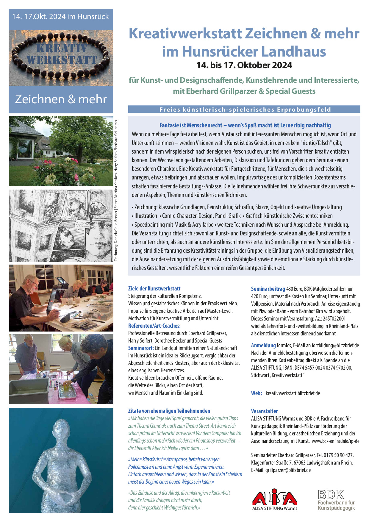 Im Herbst findet die “Kreativwerkstatt” vom 14.-17. Oktober statt! Meldet euch jetzt an, wir freuen uns über viele bekannte und unbekannte Gesichter!